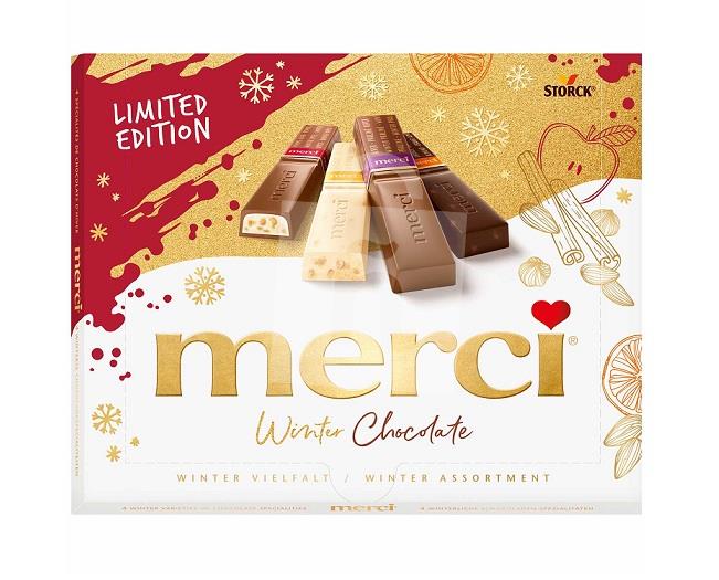 Cukor, kakaové maslo, kakaová hmota, SUŠENÉ PLNOTUČNÉ MLIEKO, rastlinné tuky (palmový, bambucký), SMETANOVÁ SUŠENÁ, SUŠENÉ ODTUŽENÉ MLIEČKO, LAKTÓZA, sekané MANDLE (1,5 %), SUŠENÉ CAROVÉ MLIEKO, PŠENIČNÁ MÚKA CELOZRNNÁ, dextróza (1,2,2 LÍSKOVÉ ORIEŠKY %), MASLOVÝ TUK, koncentrované ovocné šťavy (pomaranč, citrón), kukurica, emulgátor lecitín (SÓJOVÝ), MASLO, chudé kakao, kúsky jabĺk, arómy, soľ, PŠENIČNÝ ŠKROBU, želírovacia látka pektíny, korenie speculoos, kypriace látky (vodík sodný uhličitan, hydrogenuhličitan amónny), EXTRAKT Z JAČMENNÉHO SLADU, okysľovač kyselina citrónová, pomarančová kôra OBSAHUJE ARAŠIDY, OSTATNÉ ORECHY A VAJCIA.