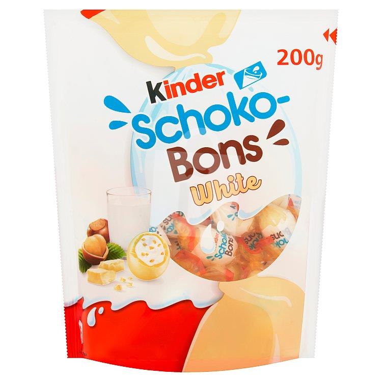 Biela čokoláda 50,5% (SUŠENÉ ODBÚDNENÉ MLIEKO, kakaové maslo, cukor, ČISTÉ MASLO, emulgátor lecitín (SÓJOVÝ), vanilín), cukor, SUŠENÉ ODSTRETNÉ MLIEKO (13,5%), palmový olej, LIESKOVÉ ORIEŠKY (5,8%), Čisté MASLO, leštiaca látka: arabská guma, šelak glukózový sirup, emulgátor lecitín (SÓJA), aróma, vanilín. Celkové mliečne zložky vo výrobku 36 %. Celkové kakaové zložky vo výrobku 16,5 %.