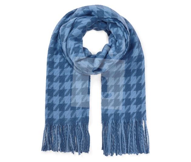 Šál dáímsky tkaný so žakárovým vzorom kohútej stopy modrý Tchibo