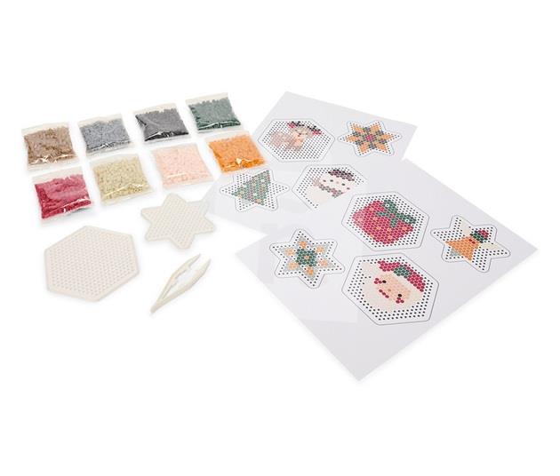 Vrátane 2 000 korálok v 8 rôznych farbách (vždy po 250), pinzety, šesťhrannej základne, hviezdicovej základne, predlohy motívu DIN A4 a návodu na použitie