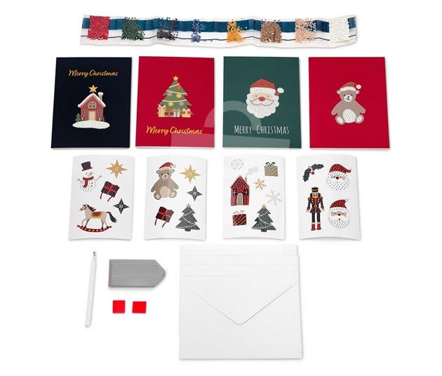 Vrátane 2 000 plastových diamantov v 8 farbách, vsádzacej ceruzky, 2x silikagélu, odkladacieho podnosu, 4 skladacích pohľadníc, 4 obálok, 4 hárkov s nálepkami a návodu na použitie