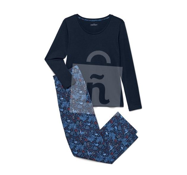 Pyžamo dámske dlhé tmavomodré, nohavice s celoplošnou potlačou 44/46 Tchibo