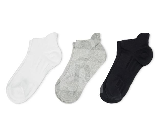 Športové ponožky, 3 páry, biele, sivé, čierne