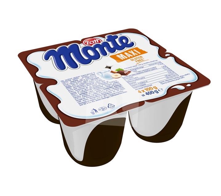 Mliečny dezert Monte Maxi čokoládový s lieskovými orieškami 4 x 100g/ 400g Zott