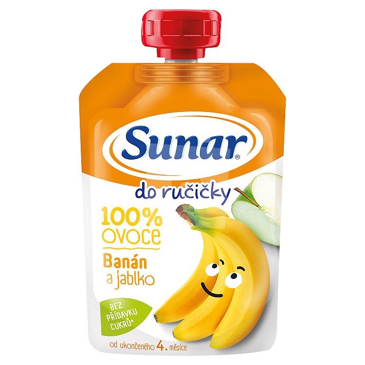 Príkrm ovocný v kapsičke do ručičky 100% jablko, banán 4+ 100g Sunárek