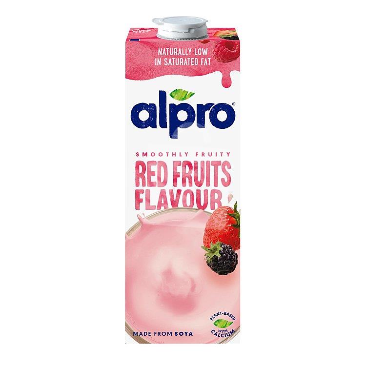 Sójová zložka (91,2 %) (pitná voda, lúpané sójové bôby (6,7 %)), cukor, šťava z červeného ovocia z koncentrátu (2,1%) (čierna baza, červená ríbezľa, jahoda, malina, černica v rôznom pomere), jablčná šťava z koncentrátu, vápnik (fosforečnan trivápenatý), maltodextrín, regulátory kyslosti (kyselina mliečna, kyselina citrónová), stabilizátory (pektíny, agar), koncentrát čiernej mrkvy, arómy, morská soľ, prírodná aróma, vitamíny (B2,B12, D2).,