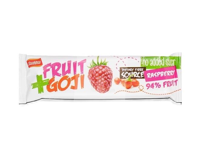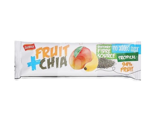 pasta z datlí, pasta z fíg, hrozienka, sušené slivky (konzervačná látka: sorban draselný), rastlinný tuk palmový, jablčná drť, jablkový koncentrát, chia semienka 2%, sušené hrušky (konzervačná látka: disiričitan draselný), mango prášok 1%, citrónový koncentrát, sušené banány 1%, prírodná aróma.