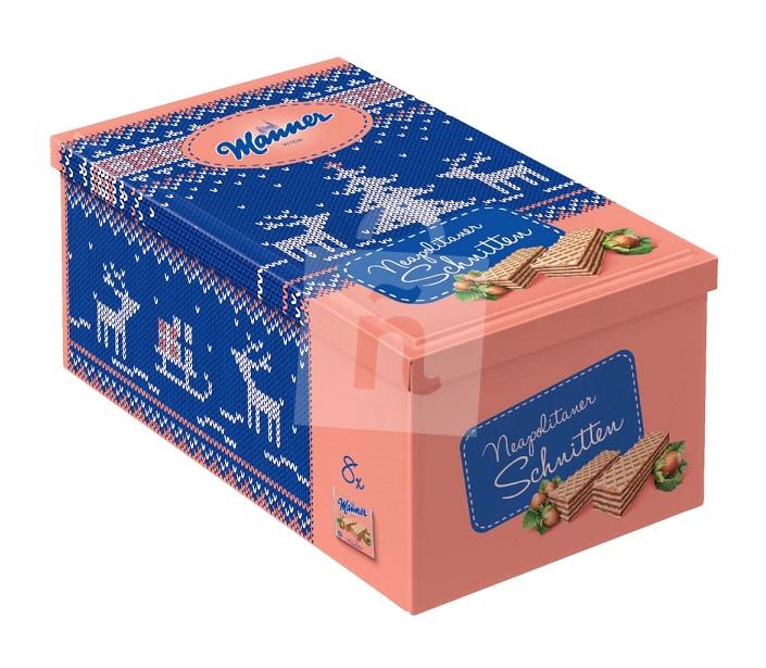 Oblátky chrumkavé s lieskooorieškovou náplňou Vianočná plechovke 600g Manner