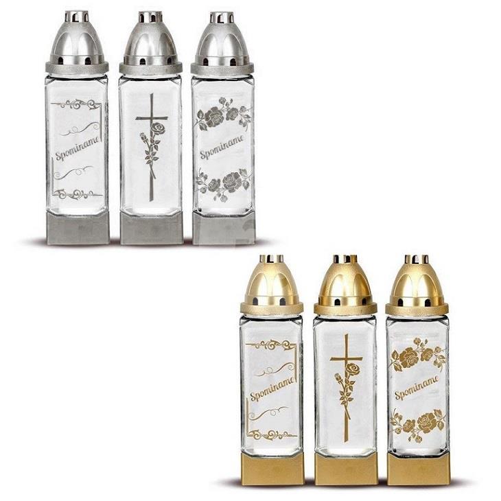 Náhrobný kahanec sklo kváder trio Witráž 7 x 26 cm