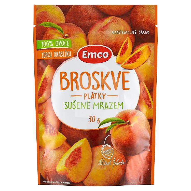 Sušené ovocie mrazom Broskyne plátky ( lyofilizované) 30g Emco