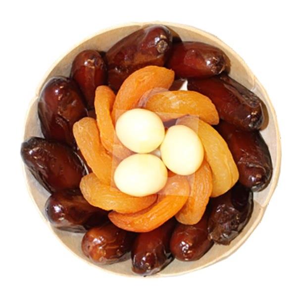 datle prisladené s kôstkou [datle, glukózový sirup (2,9%), konzervačná látka: E202], marhule sušené odkôstkované (marhule, konzervačná látka: