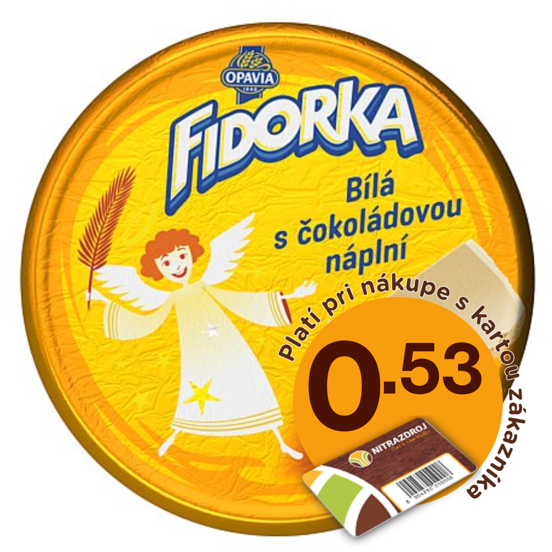 Oblátka Fidorka mliečna s kakaovou náplňou celomáčaná v mliečnej čokoláde 30g Opavia