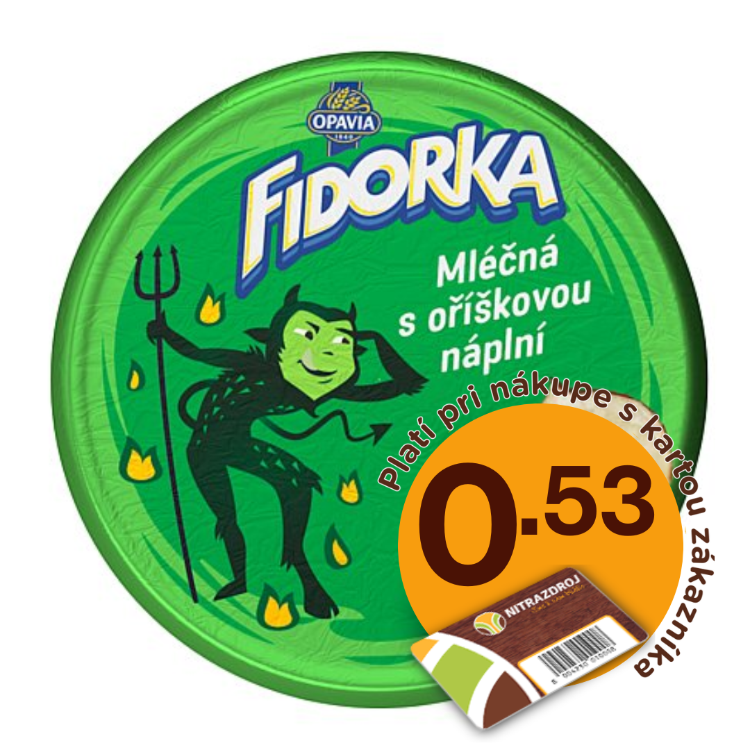 Oblátka Fidorka mliečna s orieškami celomáčaná v mliečnej čokoláde 30g Opavia