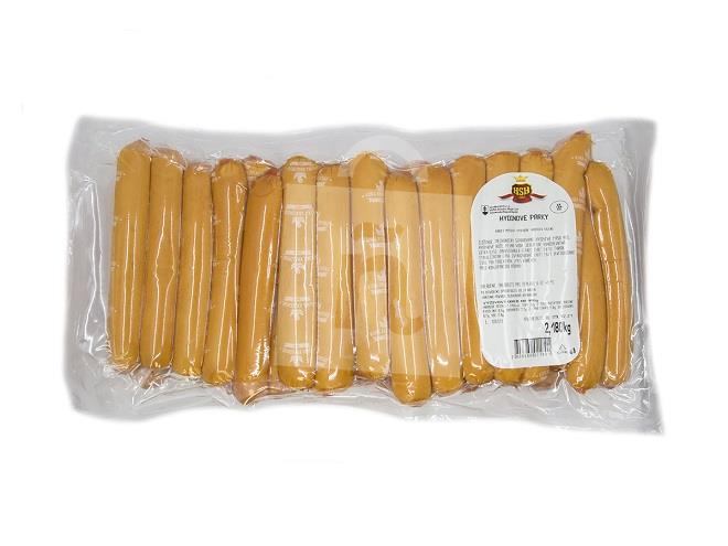 Mechanicky separované hydinové mäso 46%, hydinové kože, pitná voda, jedlá soľ, konzervačná látka E250, zahusťovadlá (E1422, E407, E415), škrob, stabilizátor E450, zvýrazňovač chuti E621, antioxidant E300, maltodextrín, zmes korenín, dextróza, farbivo E120. Pred konzumáciou ošúpať