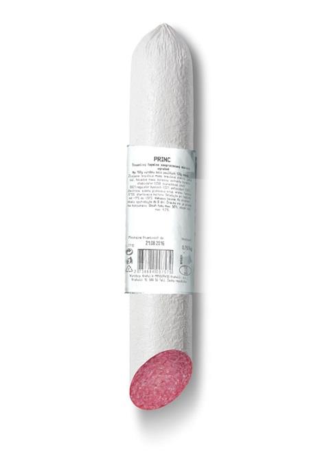 bravčové mäso, bravčová slanina, jedlá soľ, hovädzie mäso, koreniny, aroma korenín, stabilizátor E250, antioxidant E301,dextróza, farbivo E120, štartovacia kultúra.