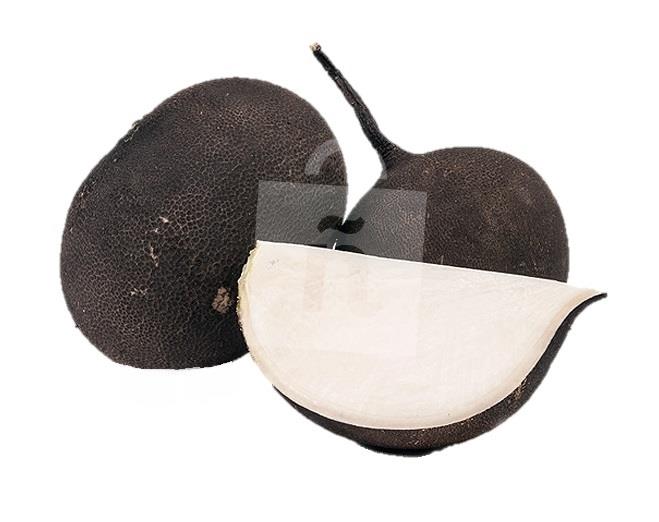 Povrch reďkovky je čiernej farby a mierne korkovitý, dužina je biela, kompaktná s výraznou chuťou.