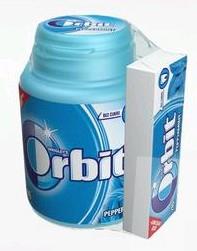 Žuvačky dražé Orbit bez cukru Peppermint 64g dóza + 14g príbal grátis Wrigley's